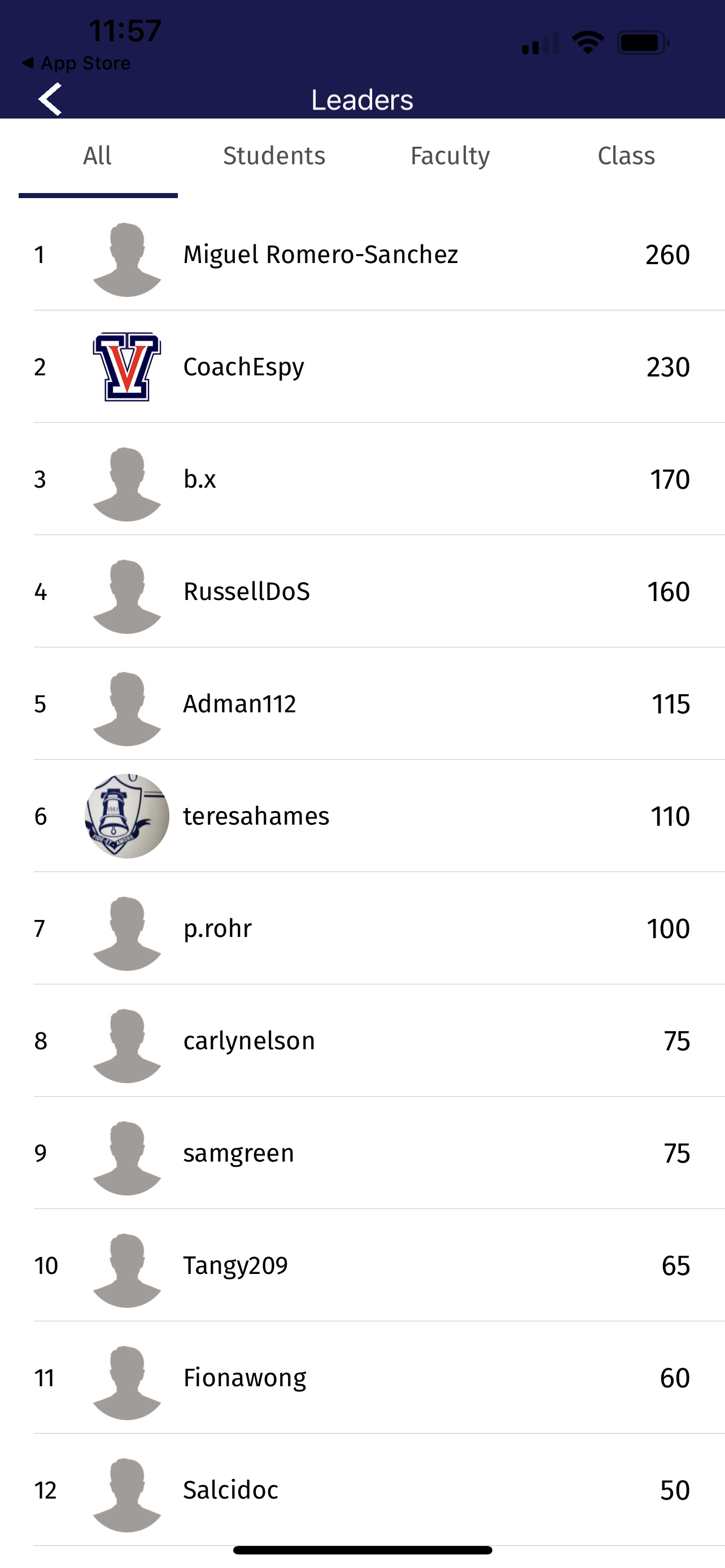 Based on the additional profile field questions you have listed in the Account module our Support Team can create custom leaderboards for users to toggle between on the app. Typical profile fields that can be used for a new toggle are Graduation Year/Class, Account Type, Homeroom, Team/Club, Greek Life, Dorm Hall, etc.